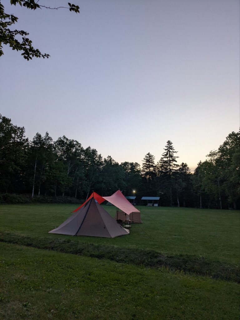 男1人キャンプ旅、病院検査治療やで仕事をしていないこの時期、平日に行けるキャンプが楽しい。1人でもこんなチャンスを逃すのはもったいない、さて何処で野営しょうか、今回の目的地の吹上温泉からの近場で静かな料金の安いマイナーなキャンプ場、暫く行ってない富良野の山部キャンプ場は、行っては見たが温泉迄50キロ以上あり、残念だがパスとなり、やっぱり近場と言えば白金温泉野営場となりました。寝坊する事無く予定通り吹上温泉貸切の時間も有りゆっくり楽しんで来ました。帰りには望岳台まで上がりクールダウンと絶景、日の出を見てキャンプ場に戻り、まったりの時間を過ごして戻りました。