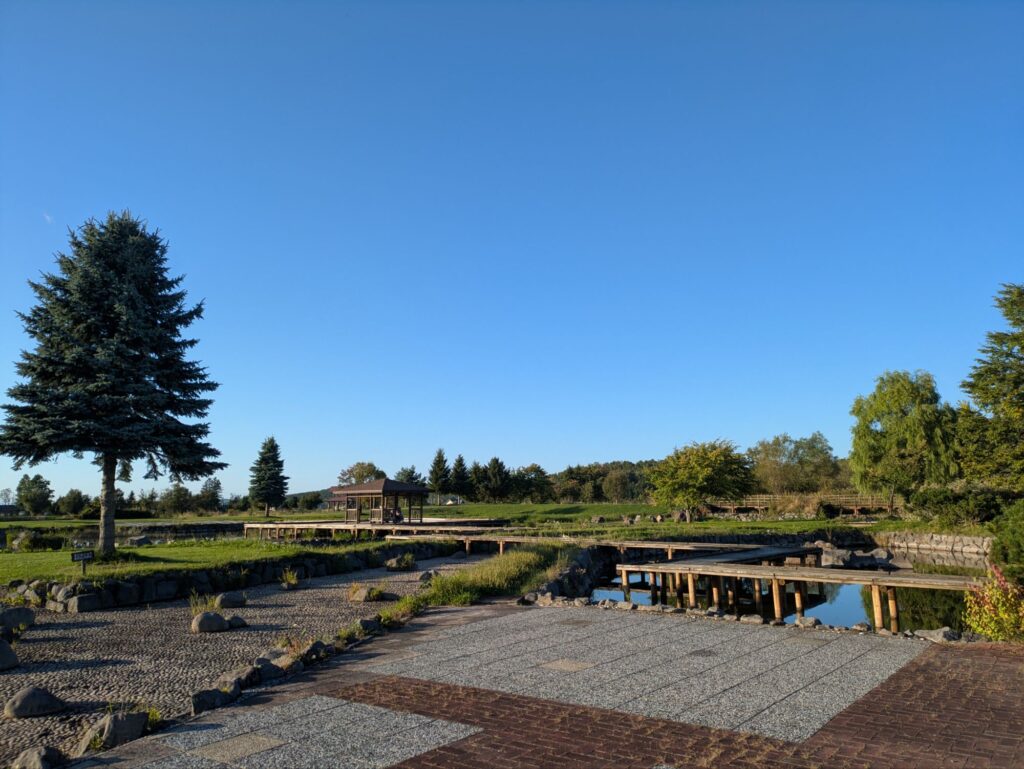 一通りの観光を終え、夜の食材をスーパーで調達、この日の車中泊地、大雪遊水公園へ、ここもハイシーズンを終え駐車場はガラガラ、夜には公園に面した道路も市街地から外れているので、車通りも殆ど無く静かな車中泊が出来ました。