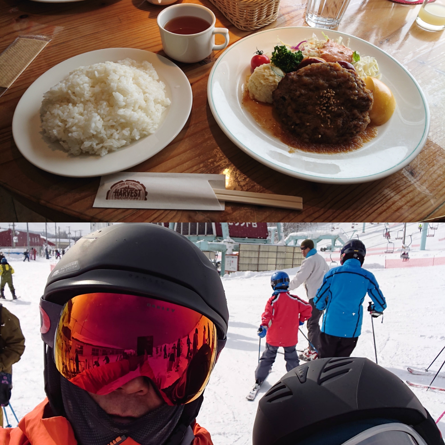 祝日は朝からの降雪で10%割ランチからの初滑り。