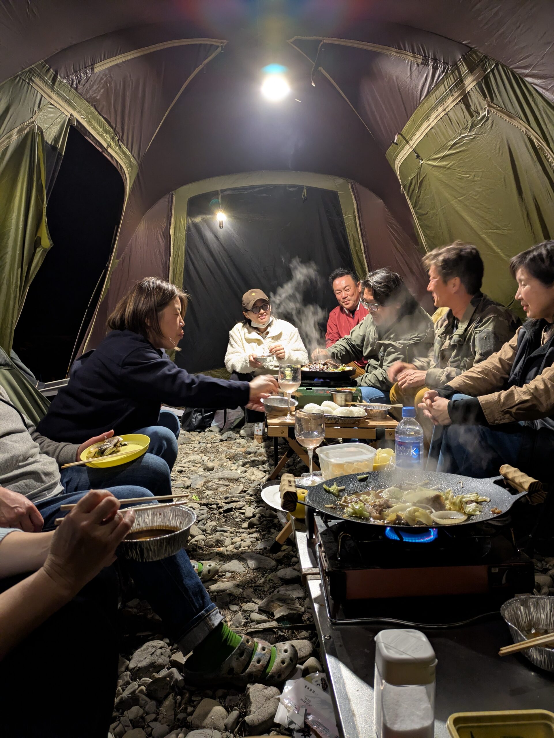 四国のカヌー仲間達と仁淀川川旅、前夜の河原キャンプから。